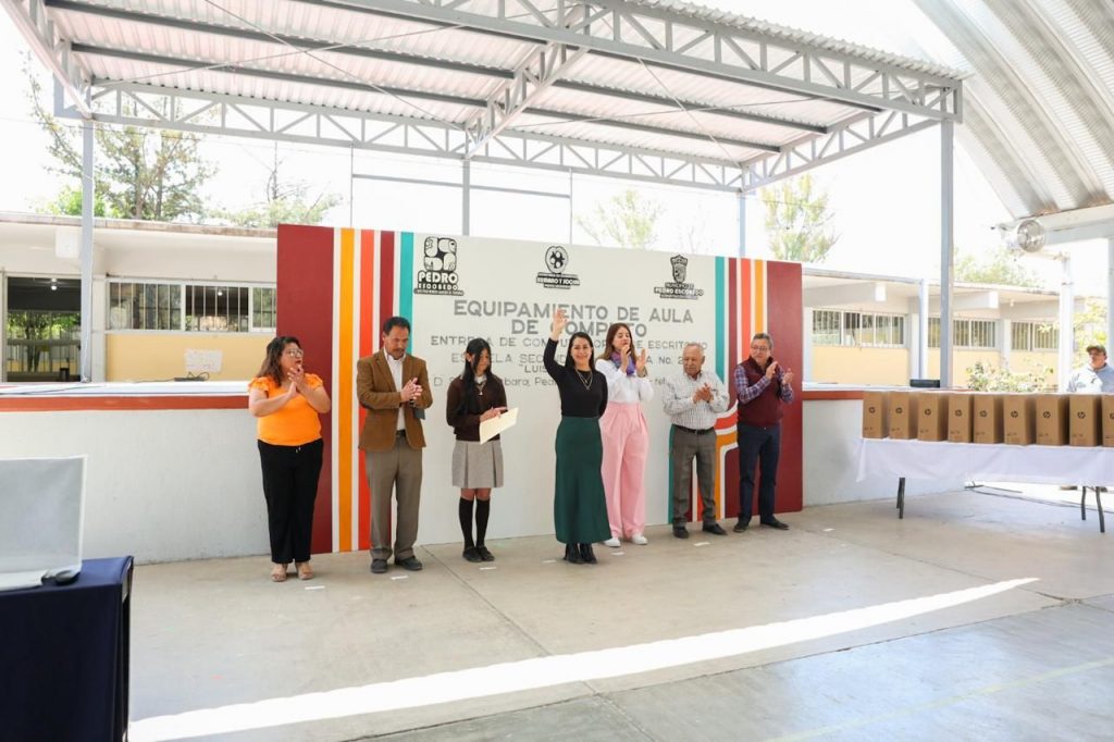 Pedro Escobedo, Qro.– La educación continúa como eje central de la política social en el municipio de Pedro Escobedo. En esta ocasión, el Gobierno Municipal realizó la entrega de equipo de cómputo a la Secundaria Técnica No. 20 “Luis Enrique Erro”, ubicada en la comunidad de Santa Bárbara la “D”.