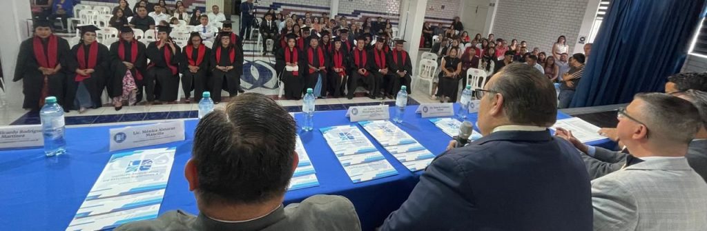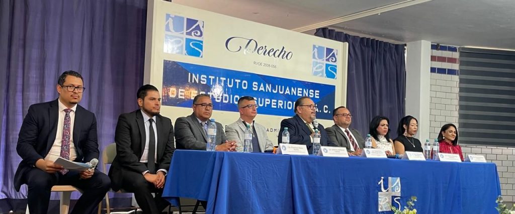 La ceremonia contó con la presencia de autoridades académicas y representantes de organismos jurídicos y de la sociedad civil. En el presídium participaron el maestro Ricardo Rodríguez Martínez, presidente del Colegio de Abogados Litigantes de Querétaro A. C., capítulo San Juan del Río; el licenciado Roberto Cárdenas Cachoa, director de la Licenciatura en Derecho del ISES; y el licenciado Carlos Tizoc Mondragón Barrón, director de Vinculación y Control Escolar de la institución.