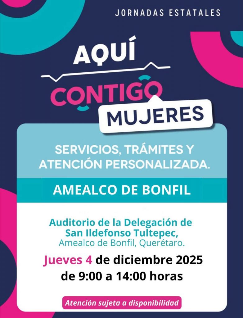 Amealco de Bonfil, Qro. — El Gobierno Municipal de Amealco, en coordinación con el Gobierno del Estado, anunció la realización de la Jornada Estatal “Aquí Contigo Mujeres”, un esfuerzo conjunto para acercar servicios, apoyos y programas dirigidos a mujeres de todas las edades.